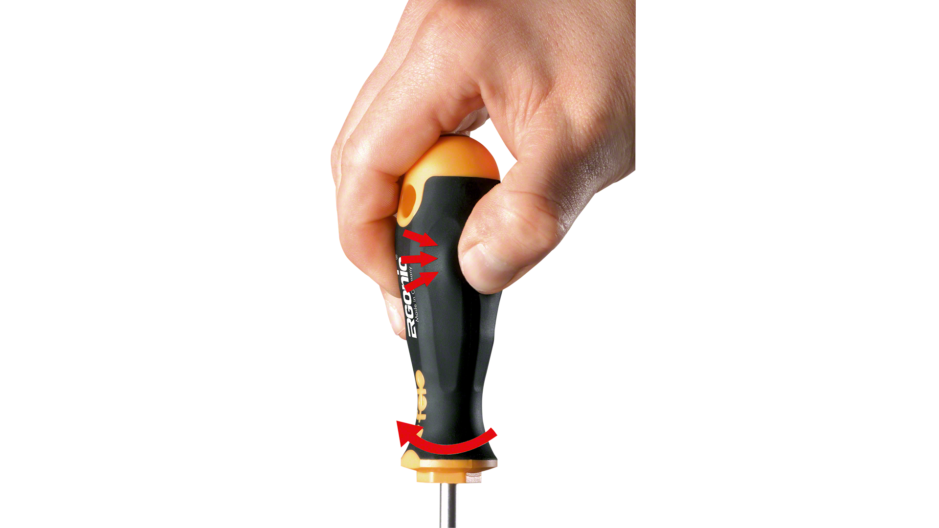 Durch die spezielle Griffform ist eine Verzahnung mit der Hand gegeben, welche zu sensiblem Arbeiten mit geringem Kraftaufwand beiträgt.