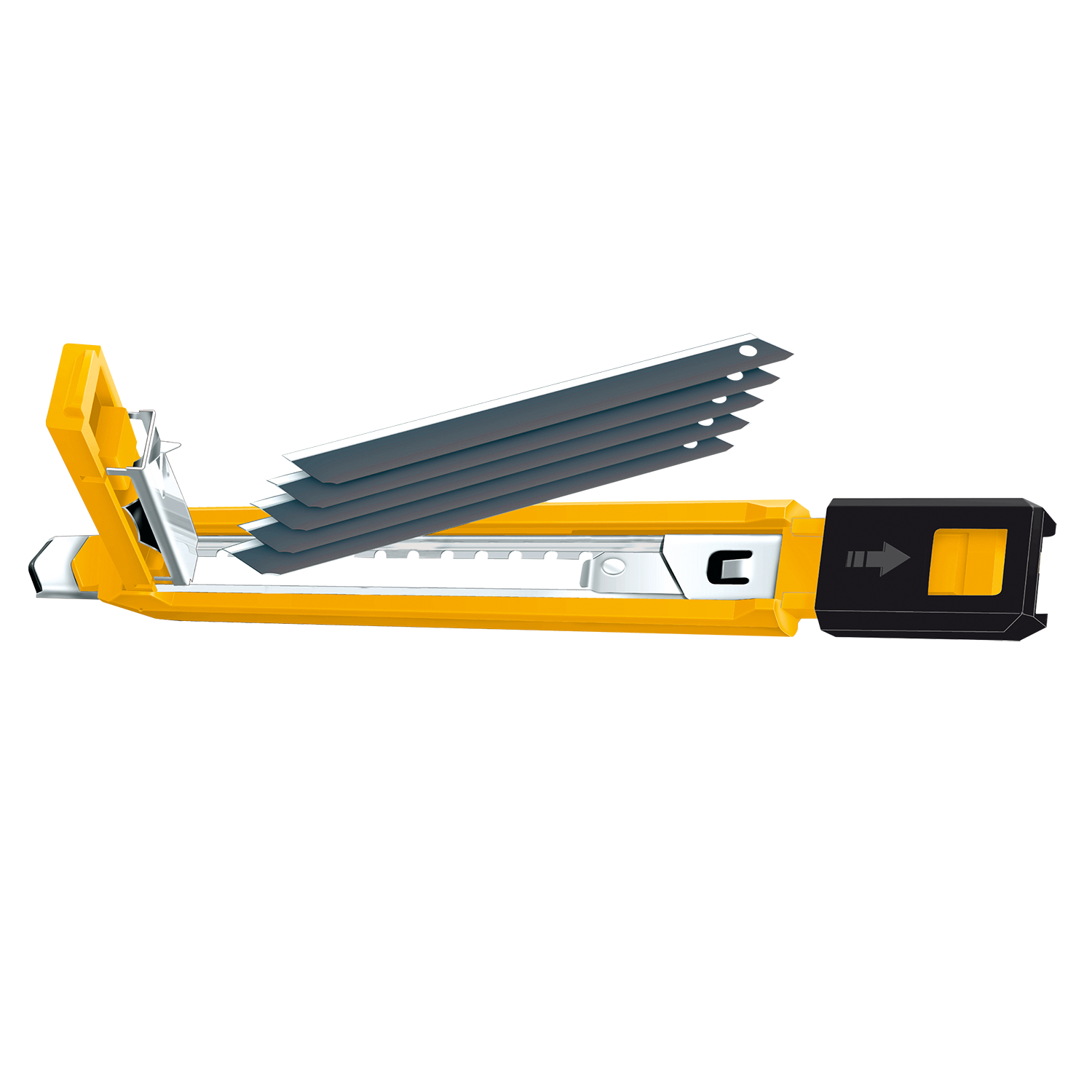 9 mm Schneidemesser aus rutschfestem ABS und automatischem Verriegelungsmechanismus Auto Lock, der auch bei harten Materialien die Klinge fest hält. Mit eingebauter Klingenhalterung, in der man bis zu 5 Klingen gleichzeitig lagern kann. Verwendet Excel Black Klingen. Besonders geeignet zum Schneiden von Papier, Folie, Pappe, Schaumstoffplatten etc.