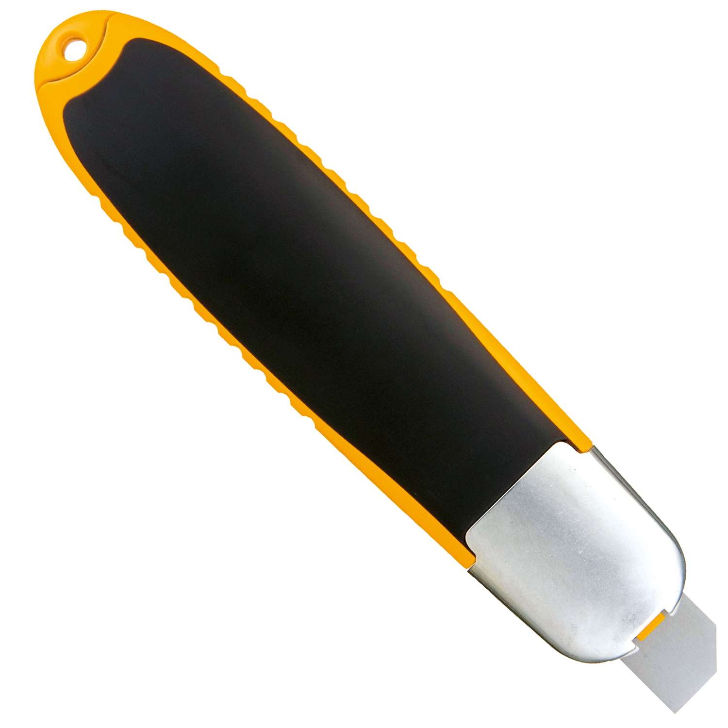 Teil der Safety Cutter Series. Schneidemesser aus ABS mit Elastomer Griff mit automatischem Schutzsystem für den Benutzer, welches die Klinge immer bedeckt. Zum Ausfahren der Klinge muss ein Hebel nach vorne geschoben werden. Besonders geeignet zum Schneiden, wenn man den Inhalt eines Pakets nicht beschädigen will.
