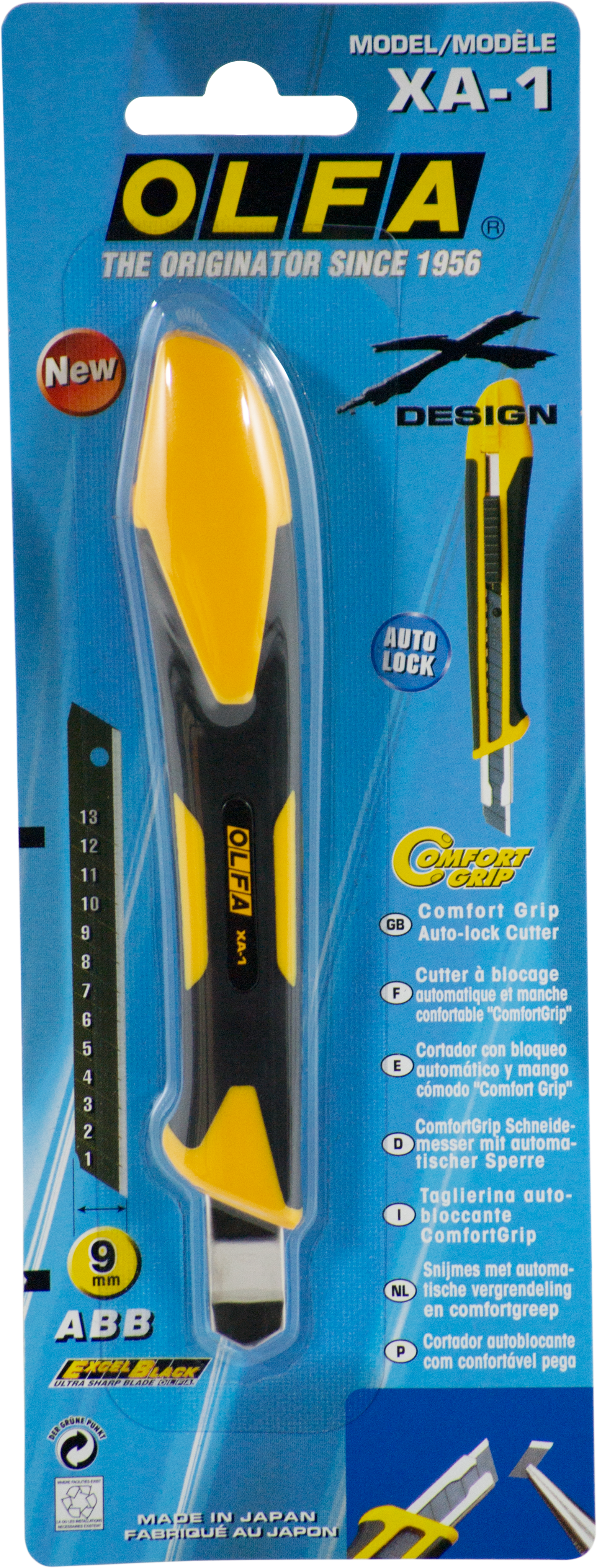 Das OLFA® XA-1 ist ein Messer für Standardaufgaben und Teil der X-Design-Serie™. Die Schneidewerkzeuge dieser besonderen Serie vereinen rutschfesten Grip mit außergewöhnlichem, innovativem Arbeitskomfort. Besonderheiten des Messers sind die automatische Klingenarretierung, der gepolsterte Handgriff für maximalen Komfort und Kontrolle sowie der Klingenschaft aus widerstandsfähigen Edelstahl, der die Klinge sicher hält. Der chemikalienbeständige Griff ist einfach zu reinigen. Mit der integrierten Taschenklemme können Sie das Messer jederzeit sicher transportieren. Eine weitere Besonderheit des XA-1 ist die ultrascharfe, langlebige ExcelBlack Abbrechklinge, die im Vergleich zu den OLFA® AB Klingen 9mm nochmal 25% höher ist. Der Klingenwechsel lässt sich einfach und ohne zusätzliches Werkzeug durchführen.
