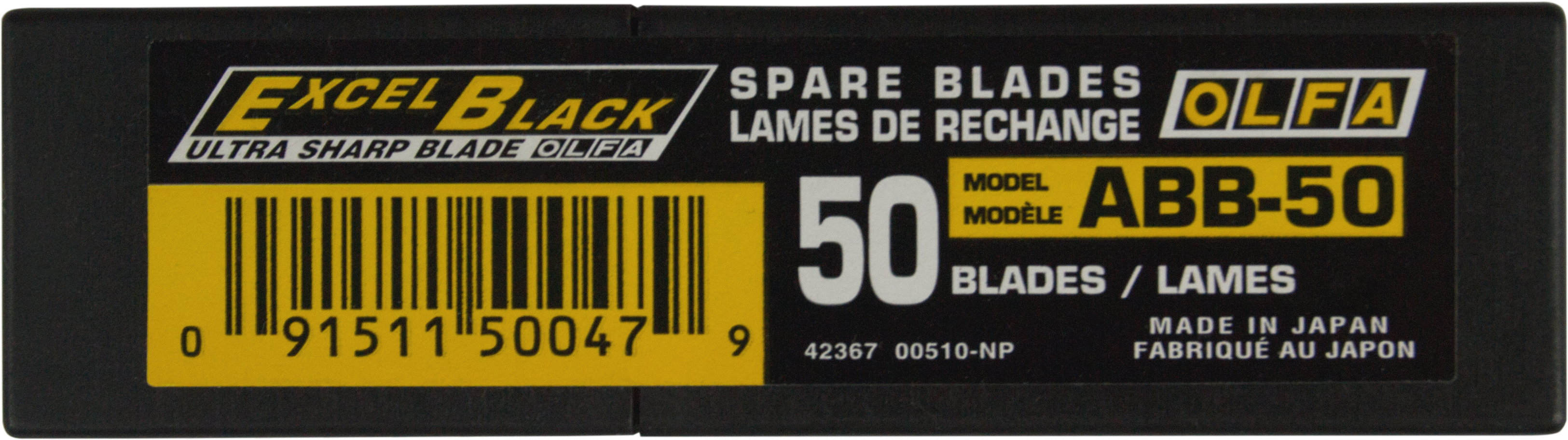 Die schwarzen, ultrascharfen OLFA® Excel Black Premium Abbrechklingen 9mm sind exklusiv für höchste Schnittleistung entworfen worden. Diese Klingen sind besonders für solche Einsatzgebiete geeignet, wo höchste Klingenschärfe gefragt ist. Die OLFA® ABB-50-Klingen sind aus hochwertigen Karbonwerkzeugstahl gefertigt. Dank des speziellen Fertigungsprozess mittels doppelten Honens, sind diese Klingen um 25 % schärfer als Klingen der OLFA® AB-Serie. Die Abbrechklingen sind für besondere Langlebigkeit produziert - für scharfe Kanten mit jedem Schnitt. 13 Abbrechsegmente pro Klinge. Die Verpackung enthält 50 ultrascharfe Klingen.