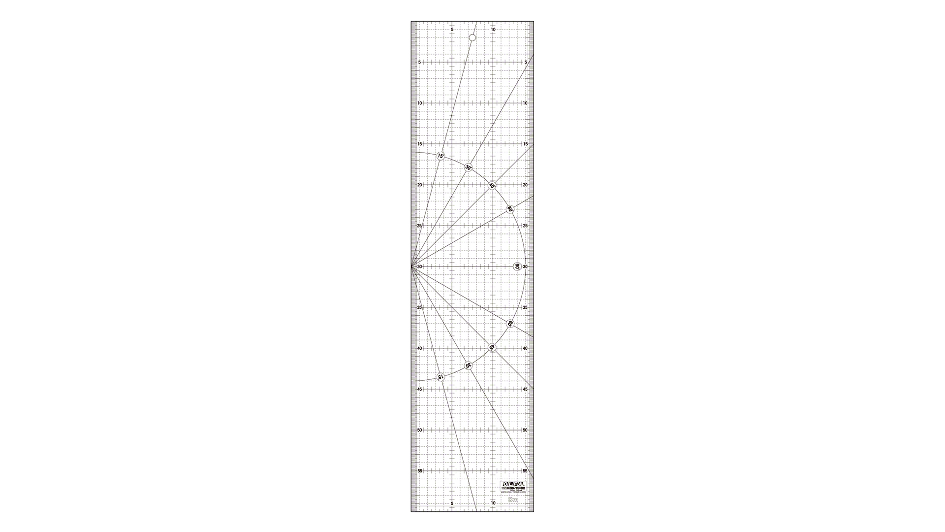 Lineal Maße: 15 x 60 cm. Anti-Rutsch Lineal aus mattem Acryl mit schwarzer metrischer Einteilung, um diese besser auf hell- und dunkelfarbigen Stoffen zu sehen. Mit Winkelmarkierungen für 15°, 30°, 45°, 60° & 90°.