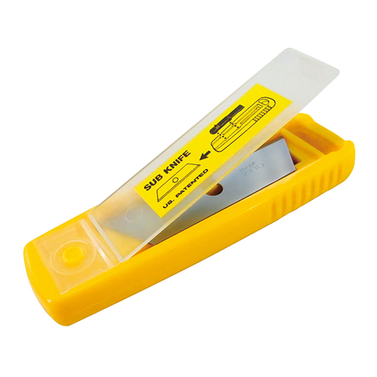 Teil der Safety Cutter Series. Schneidemesser aus ABS mit automatischem Schutzsystem für den Benutzer, welches die 17,5mm Klinge immer bedeckt. Kleiner als SK-6. Besonders geeignet zum Schneiden, wenn man den Inhalt eines Pakets nicht beschädigen will.